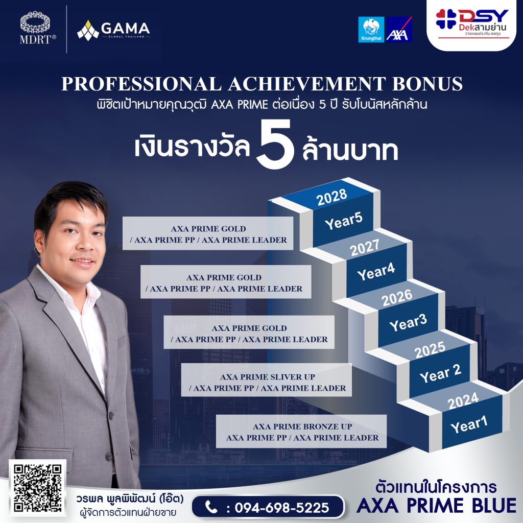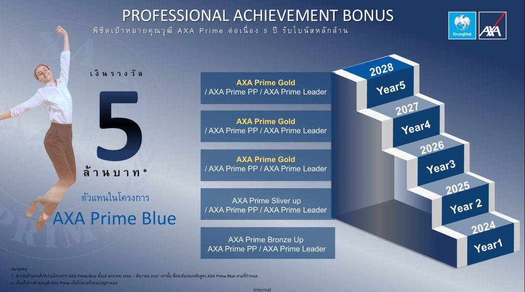 ตัวแทนเข้าร่วมโครงการ "AXA PRIME BLUE" ทำงาน 5 ปี รับโบนัส 5 ล้าน