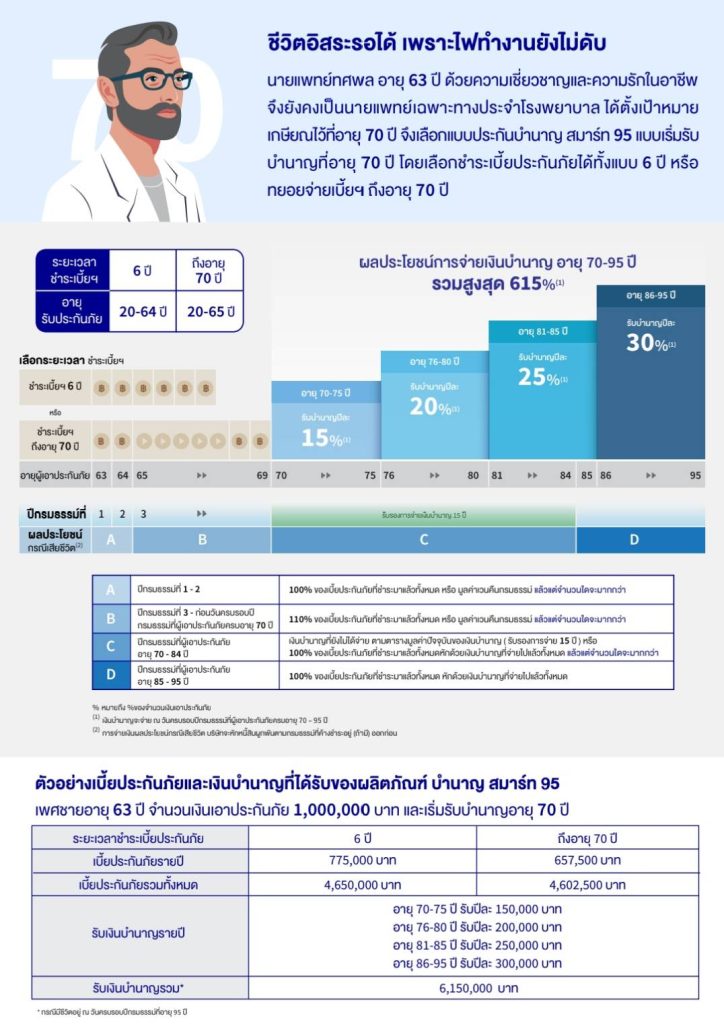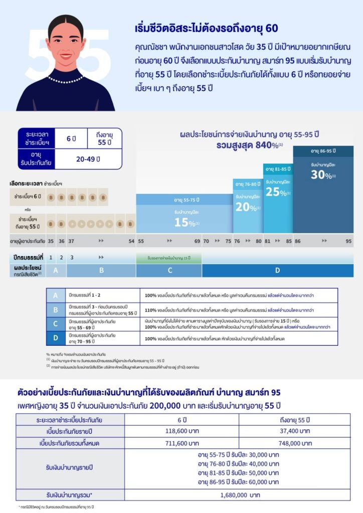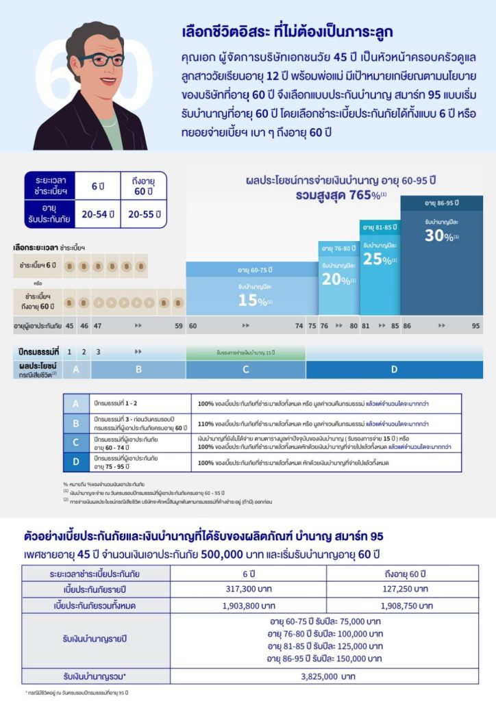 รายละเอียดผลประโยชน์และความคุ้มครอง แบบประกันบำนาญ สมาร์ท 95